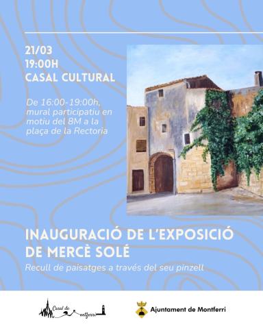 El proper dissabte 21 de març, a les 19:00h a la Casal Cultural de Montferri, inaugurarem l’exposició de la montferrienca Mercè Solé L’exposició acull una col·lecció de pintures de l’artista, on identificarem paisatges del Camp, entre ells Montferri. Un passeig pel nostre territori a través del seu...